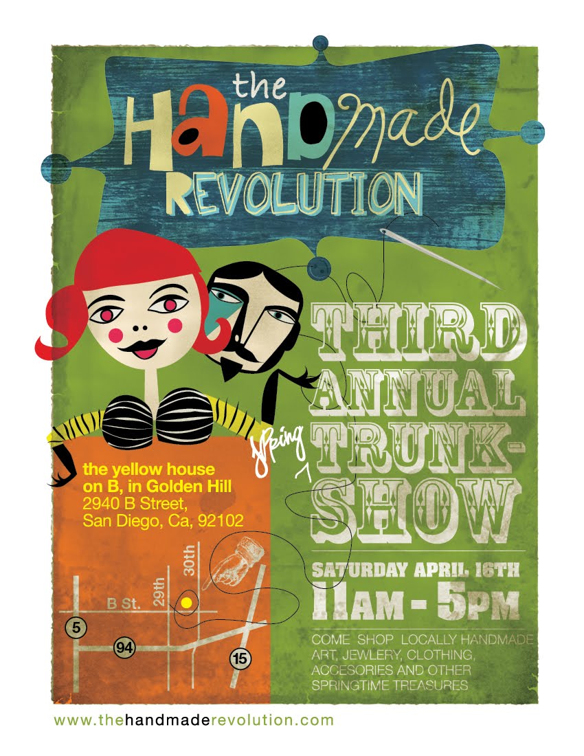 • The Handmade Revolution third annual trunk show of local, handmade goods for sale is Saturday from 11 a.m. to 5 p.m. at the yellow house on B Street in Golden Hill. (MIHO Gastrotruck, whose owner we interviewed last year, will be there at the start.)