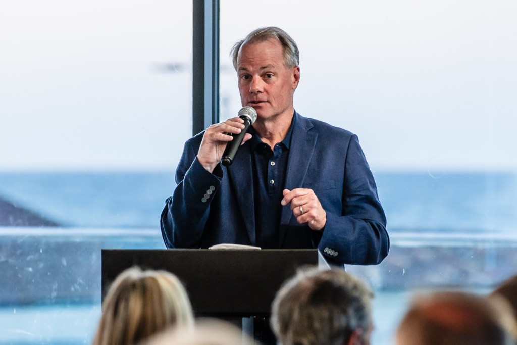 George Mullen speaks at Mission Beach Town Council meeting on Oct. 2, 2023. / Photo by Ariana Drehsler