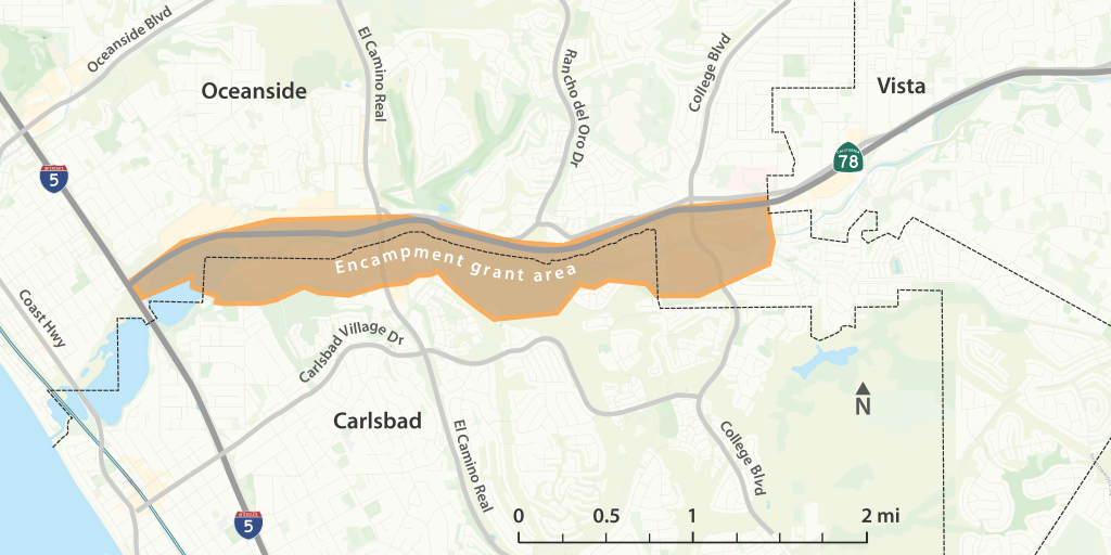 In 2024, Oceanside and Carlsbad received a state grant to move unsheltered homeless people camped along state Route 78 and the Buena Vista Creek into long-term housing.