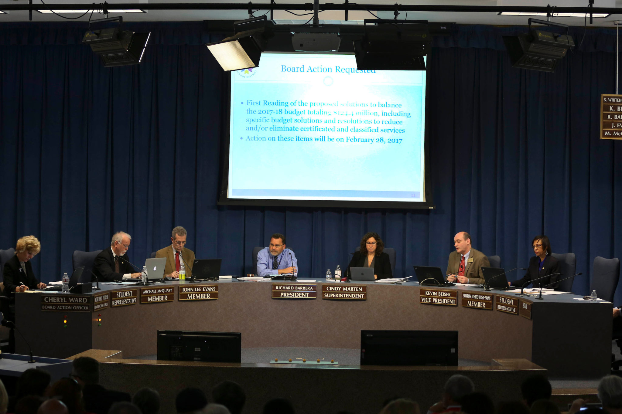 San Diego Unified School District trustees expect to grapple with nearly $41 million in budget cuts next year, plus at least $35 million more the year after. Where the money will come from is still unclear.