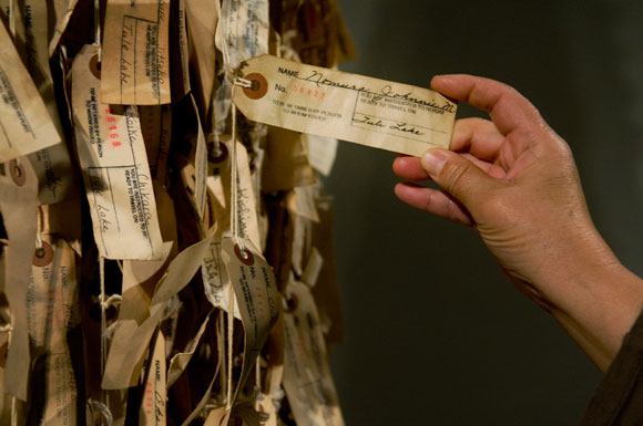 The process of replicating these tags using government databases, writing thousands of names, numbers and camp locations became a meditative process. And for the hundreds of volunteers, they could for a minute or two, as they wrote the names, contemplate and wonder what this person was thinking as he or she was being moved from the comforts of home to the spare and bare prisons placed in the foreboding deserts and wastelands of America.